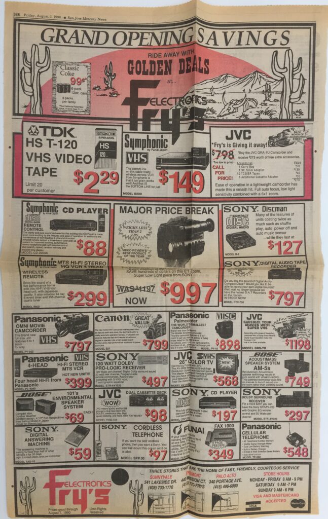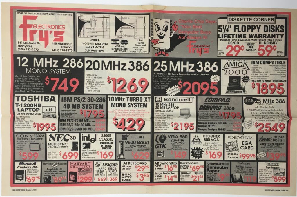 Started working for Fry's Electronics first store as stock boy for floppy disks and RS-232 and Parallel Cable. This lasted about two weeks because it ended up that I knew more about the PCs then the salespeople. I was also worked behind the tech counter building the PCs by installing the RAM, Hard Drives and loading in the operating system. I think I was employee #32 for Fry's.